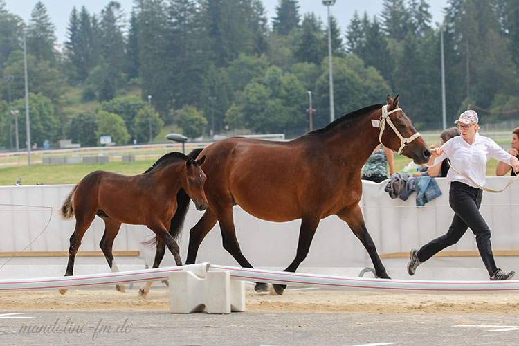 Hengstanwärter Emir kommt aus einer erfolgreichen Stutenfamilie. Seine Mutter Arabelle (Libero - Valiume / Elvis - Vanille / Clé d'Or) hat noch zwei Vollschwestern. Aida ist die Mutter von FM Hengst Historique (Hier geht es zu Historique). Die andere Vollschwester ist Amelie, die zusammen mit dem Hengstfohlen Hilare von Hayden 2019 auf diesem Bild zu sehen ist.