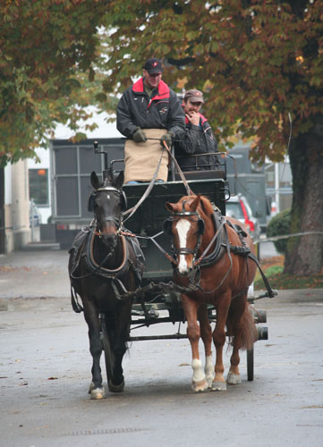 Wenn ein Freiberger noch nichts gemacht hat, dann fahren wir ihn zuerst. Bei den Warmblütern sind viele schon geritten, wenn sie zum Einfahren kommen. Für uns als Fahrer bringt das Vorteile, da die Pferde bereits ans Gebiss gewöhnt sind und dieses gut annehmen. Die Reiter empfinden es umgekehrt auch als Vorteil, wenn die Pferde bereits eingefahren sind. Die Pferde haben schon gelernt sich zu fügen und haben den Straßenverkehr kennen und tolerieren gelernt.