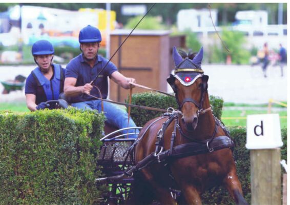 Ich muss zugeben, dass Nejack fast mehr geritten als gefahren wird. Ein gutes Fahrpferd ist gut geritten. Nejack ist auch sehr gut am Sprung. Manche halten mich für verrückt, dass ich ihn springen lasse, weil sie denken so könnten gefährliche Situationen am Wagen entstehen. Aber warum sollte er nicht springen, wenn er es gerne macht. Klar möchte ich das vor einem großen Einsatz nicht provozieren, da schaue ich schon.