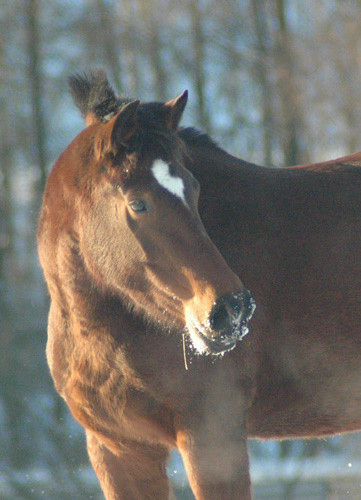 Im Winter hatte ich kaum Zeit mich mit Luna zu beschäftigen. Darum wurde sie reiterlich in dieser Zeit kaum gefördert. Der Reitplatz ist für ein Pferd mit ihren Gängen auch sehr klein. Vor allem dann wenn eine Hälfte unter Wasser steht. André, der sich immer mehr mit Luna anfreundete, fuhr sie aber 1-2 mal Pro Woche an der Kutsche. Einspännig war sie manchmal etwas schreckhaft, aber trotzdem sehr gut zu kontrollieren. 2-spännig ist sie eine Lebensversicherung. Es stellte sich heraus, daß ihr die wenige Arbeit, die André ganz in Ruhe anging, sehr gut tat. Sie wurde immer zufriedener und sicherer. Wir haben angefangen sie vermehrt im Gelände zu reiten. Das macht hauptsächlich Klaus, da ich mit Quinns reiterlicher Ausbildung beschäftigt bin und Queshya und Luna noch longiere, am Boden arbeite und manchmal auf dem Platz reite. Sie macht absolut gar keine Probleme im Gelände ist aufmerksam und ruhig. Sie hat keine Probleme damit vorne oder hinten zu gehen und kann auch stehen bzw. warten.