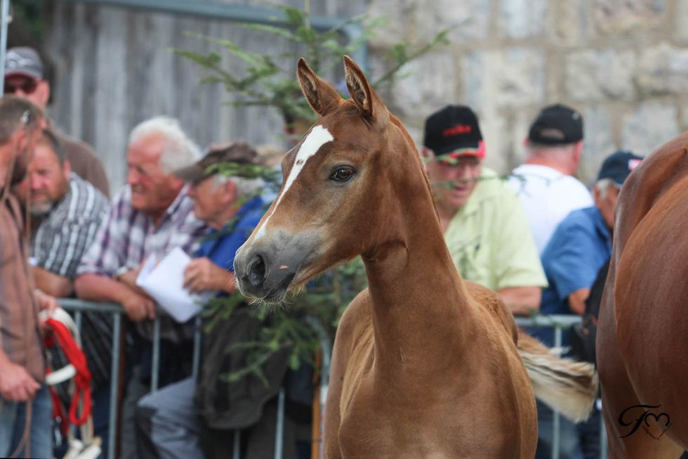 Hier seht ihr den Hengstanwärter Star von Niagara an der Fohlenschau in Saignelégier 2019. Seinen Namen trägt er nicht ohne Grund, denn seine Mutter Saidy (Libéro/ Excell/ Hobby) hat einen bekannten Bruder, den Freibergerhengst Laos. Großmutter Sirène hat bereits in unserem Glovelier-Kalender von 2019 mit gemacht.