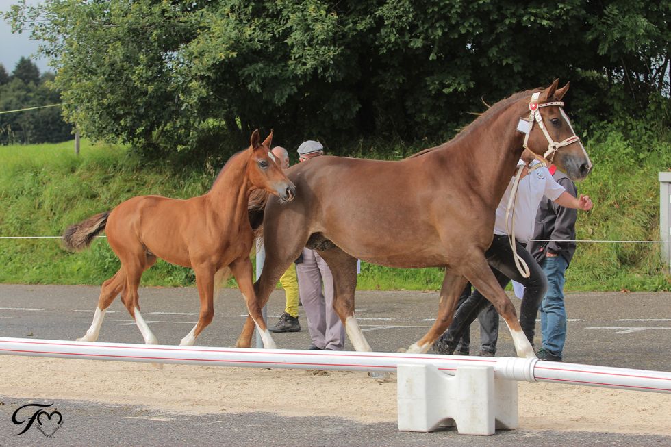 Pépite (Hara-Kiri - Pralinée / Coventry - Palme d'Or / Legato, geboren 2014) ist eine Enkelin Palme d'Ors, hier mit Hengstfohlen Nouki von Neverland