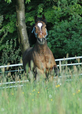 Quinn machte gute Fortschritte, er bewies seine schnelle Auffassungsgabe. Seine schnelle Auffassungsgabe begann Mitte des Jahres allerdings darunter zu leiden, dass er die Liebe entdeckte. Als seine Schwester Luna und seine Nichte Samira, April 2008, zu uns kamen fanden sie sich sofort zusammen. Es war interessant zu beobachten, dass sich alle Vollgeschwister sofort zusammentaten, obwohl sich vorher gar nicht alle kannten (Miss). Mich würde wirklich interessieren ob es eine wissenschaftliche Erklärung dafür gibt. Können sich Geschwister am Geruch erkennen auch wenn sie sich noch nie gesehen haben? In der Schweiz hatten sich Quinn, Luna und Samira im Jahr 2006 schon kennengelernt und gut verstanden. Jetzt fing Quinn an für Samira zu schwärmen. Das machte uns zu Anfang wenig Sorgen, da die kleine Herde sehr harmonisch und alle Pferde ausgeglichen waren.