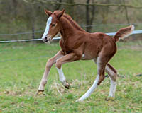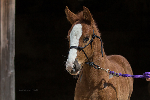 Tanja hat den schweizerischen Teil unserer Pferdefamilie in den letzten Jahren fleißig erweitert. Joy von Hayden aus der Quyara (Quinto) konnte in diesem Jahr seinen Feldtest erfolgreich absolvieren und belegte sogar den ersten Rang. Er befindet sich im Besitz von Brigitte Favre und Thierry Froidevaux, den Besitzern seines Vaters Hayden. Im Jahr 2016 hat Quyara ein wunderschönes Stutfohlen bekommen, das nicht umsonst den Namen Hope trägt. Wir hoffen damit die Zukunft unserer Pferdefamilie in der Schweiz gesichert zu haben. Nach ein paar, aus verschiedenen Gründen, sehr anstrengenden Jahren, konnten wir uns in diesem Jahr den langersehnten Wunsch, hier in Deutschland nochmal ein Fohlen zu ziehen, auch erfüllen. Wir sind überglücklich ein gesundes Stutfohlen in der Familie begrüßen zu dürfen. Merida ist ein kunterbunter Fuchs, der durch ihre Farbe den Bogen zurück zu unseren Anfängen schlägt. Tanjas erstes Pferd Camy, ein wunderschöner Dunkelfuchs, ist leider im letzten Jahr verstorben. Sie ist die Stammstute unseres Pferdebestandes. Mandoline, mein erstes Pferd,ist ja ebenfalls ein Fuchs gewesen. Wir sind sehr gespannt auf die Entwicklung unserer beiden Zukunftsträger.